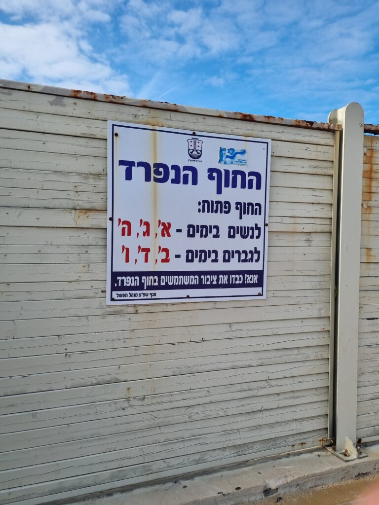 חשוב לדעת: בימי שבת וחג אין שירותי הצלה בחוף הנפרד באשקלון. הרחצה באחריות המתרחצים בלבד.